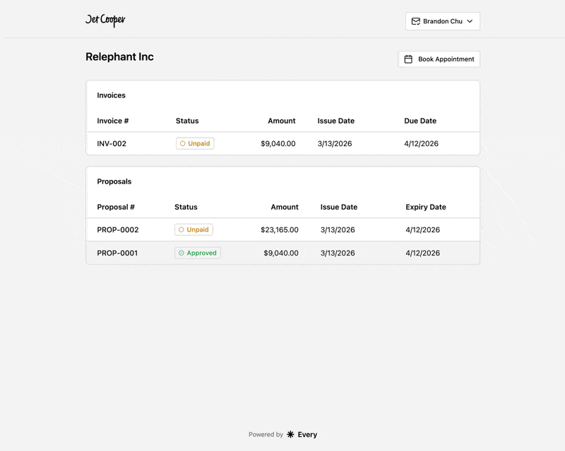 Full-service design agency — invoicing, proposals, booking, and client management.